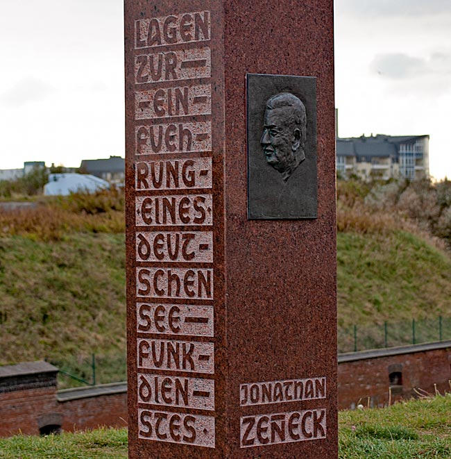 Gedenkstein Jonathan Zeneck am Deich nahe der Kugelbake