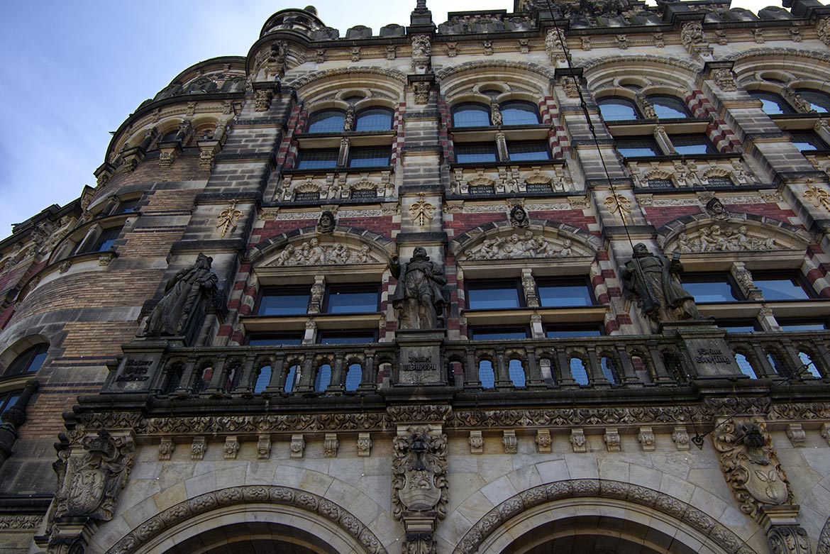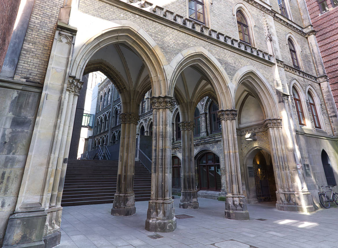 Aber bei aller Geschäftigkeit, die hier oft herrscht, gibt es auch Sehenswertes zu entdecken: Knast, Kommerz und Kunst. Für den Knast steht das mächtige Gerichtsgebäude das im Stil des Historismus hier nach der Grundsteinlegung 1891 zwischen 1893 und 1895 nach Entwürfen der Architekten Ludwig Klingenberg und Hugo Weber errichtet wurde.