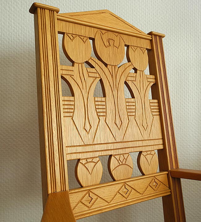Tulpenmotive nach dem Vorbild von Heinrich Vogeler an einem Worpsweder Lehnstuhl
